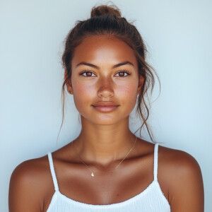 «A 22-year-old cute Californian woman with brown skin, a clean fa...»