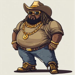 «Create a funny cartoon like overweight African American male wit...»