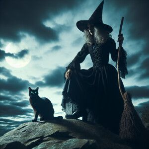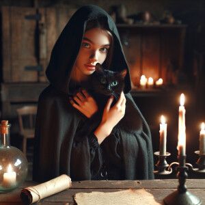 «Witch holding black cat»