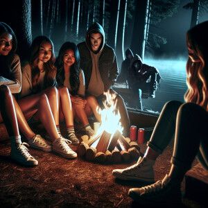 «18tween girls Jason hiding in bushes, Crystal Lake campfire»