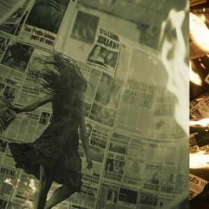 «Epic scene, art shows a woman man in a black fashion outfit, eme...»