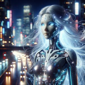 «An ethereal android goddess, glowing with an otherworldly aura a...»