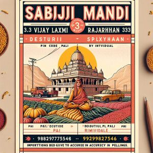 «make a poster for vijay laxmi sabji mandi located at desuri, pa...»