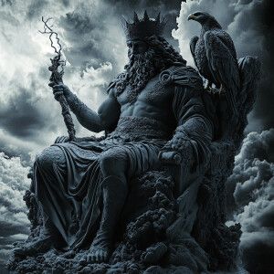 «Create a majestic image of ferrofluid Zeus, the ancient Greek go...»