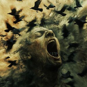 «Visual: A flock of crows fly from the open mouth of a mummified...»