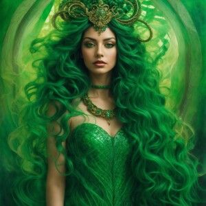 «A captivatingly enigmatic Gorgon queen, her features a delicate...»