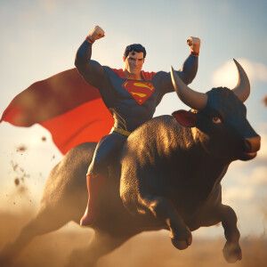«Create an 3d animated scene featuring Superman triumphantly ridi...»