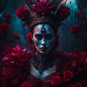 «A menacing alien zombie queen, with skin made of shimmering crys...»