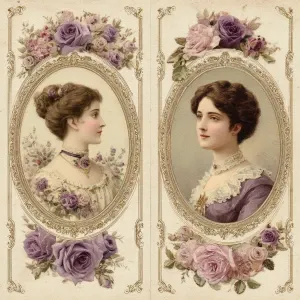 «Victorian Mauve Rose Portrait Cameos – 2 Large Cards (Ornate Fra...»