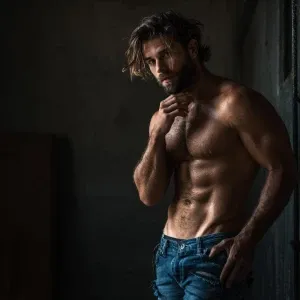 «Generate an image featuring a mature, muscular man exuding confi...»