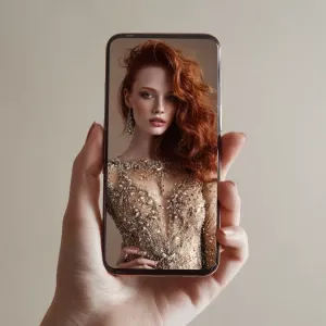 «Generate an image showing a female hand holding a smartphone dis...»