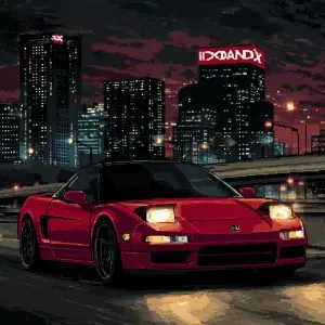 «Create a realistic image showing a 1999 Honda NSX driving throug...»