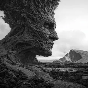 «Create an image of a colossal tree exuding toxicity with a human...»
