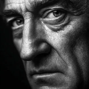 «Ultra realistic big close-up portrait of Robert De Niro, black a...»