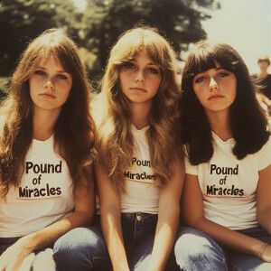 «Color film photograph from 1975 of three beautiful 23-year-old w...»