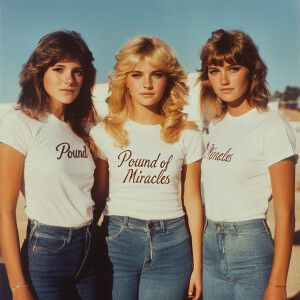 «Color film photograph from 1975 of three beautiful 23-year-old w...»