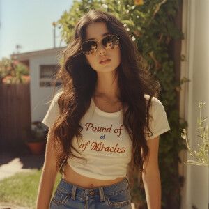 «Color film photograph from 1975 of a beautiful 23-year-old model...»