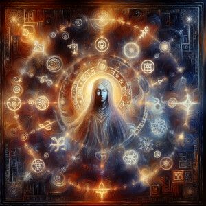 «Intricately woven sigils, glowing with an otherworldly light, da...»