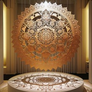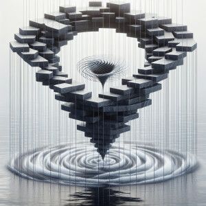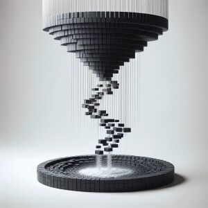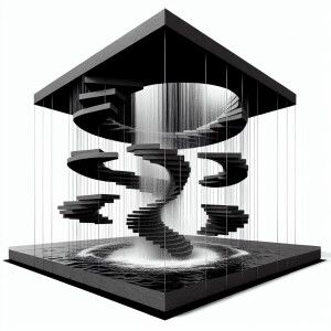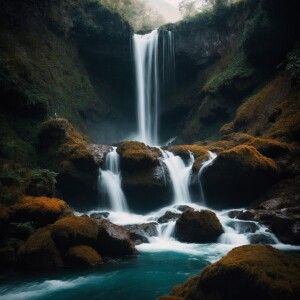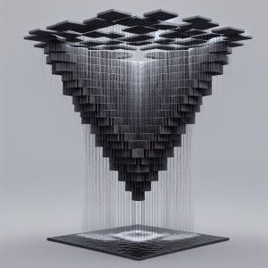 «Crea una fuente con diseño de cascada suspendida en el aire, con...»