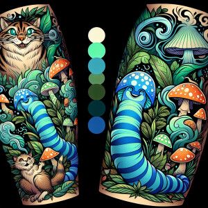 «Design a full-sleeve tattoo for the left arm, inspired by "Alice...»