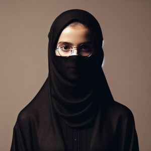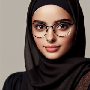 «A girl wearing abaya and specs having clear and fair skintone»