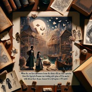 «Design an image of a magical bookshop where, after dark, literar...»