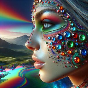 «A close-up view of a beautiful woman's profile adorned with nume...»