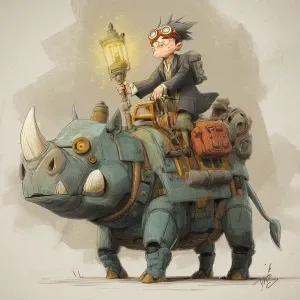 «A majestic, fearsome griffin looms in the distance, its powerful...»