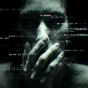 «a state-sponsored message with glitch effects, subliminal text,...»