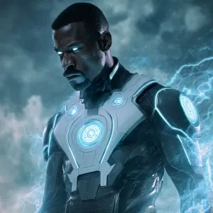 «Generate an image of a muscular, Black man with short, dark hair...»