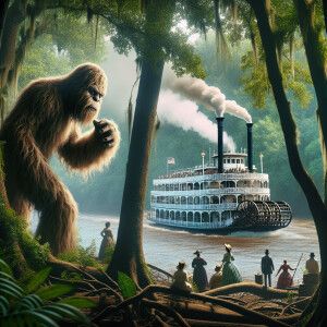 «Create an image of a tall, furry Sasquatch with an expression bl...»