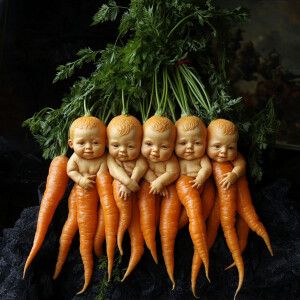 «A bunch of carrots in the form of anthropomorphic babies.»