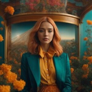 «Realistic woman, nerdy, rond glasses, beautiful, french, silk re...»