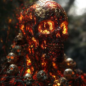 «An extraterrestrial being with a crimson, golden, and obsidian-c...»