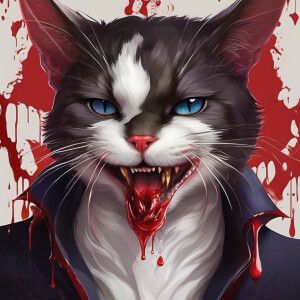 «Renaissance cat, lounging on chaise lounge eating sardines»