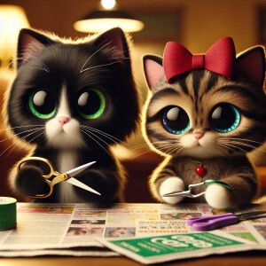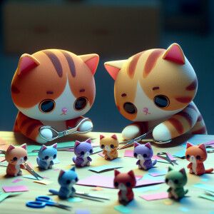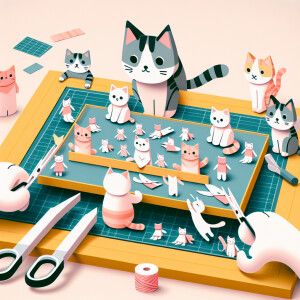 «Cartoon Cats cutting out paper cat dolls, cute»