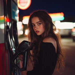«strange to see a teenager in a swimsuit bottom pumping gas»
