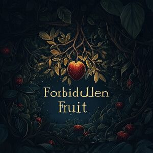 «Design a book cover titled "Forbidden Fruit" featuring an artful...»