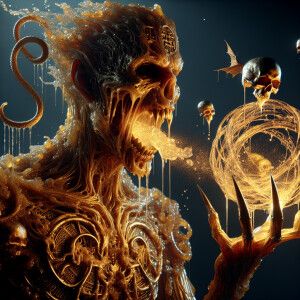 «A gorgon with pastel flower-adorned serpentine hair poses elegan...»