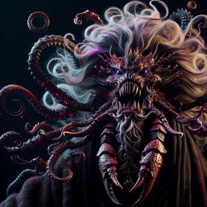 «A menacing creature with crab legs for a face, sharp fangs protr...»