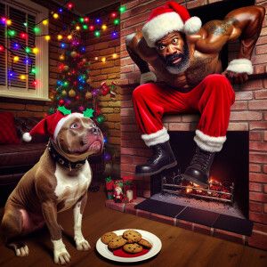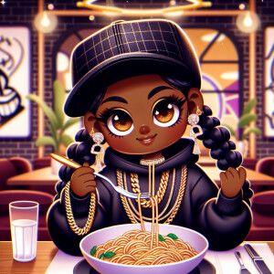 «Illustrate a funny scene where an African American hip hop mascu...»