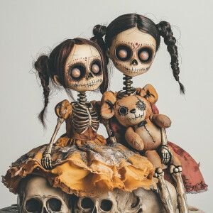 «disney-esque creepy dolls with skeleton faces and dia de los Mue...»