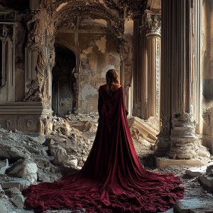 «In the dimly lit ruins of a plush chiaroscuro lost civilization,...»