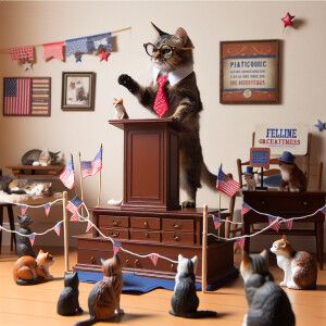 «Depict a domestic cat in a humorous scene participating in a hum...»