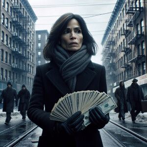 «Title: Cautious Wealth on the City Streets