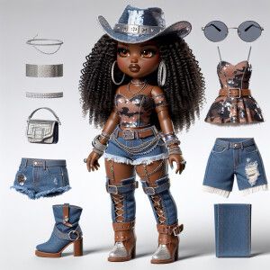 «A full-body life size chibi curvy African American woman with br...»