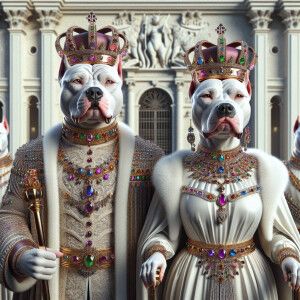 «A hyper-realistic 3D image of an anthropomorphic white pitbull K...»