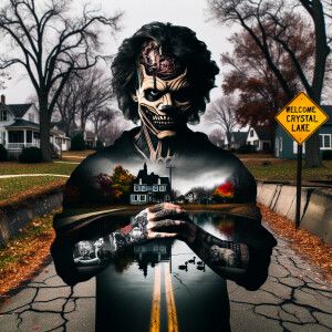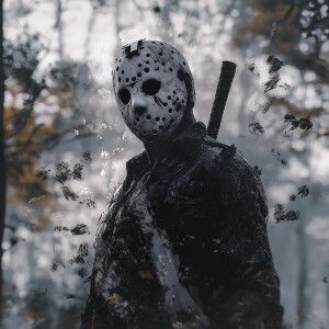 «Create an image of Jason from "Friday the 13th" depicted in a da...»