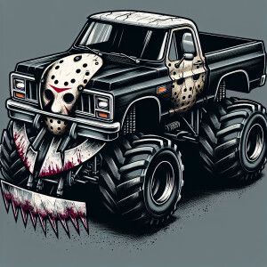«Design a monster truck influenced by Jason Voorhees, featuring t...»