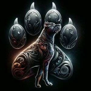 «double exposure image silhouette of a dog paw print, inside the...»